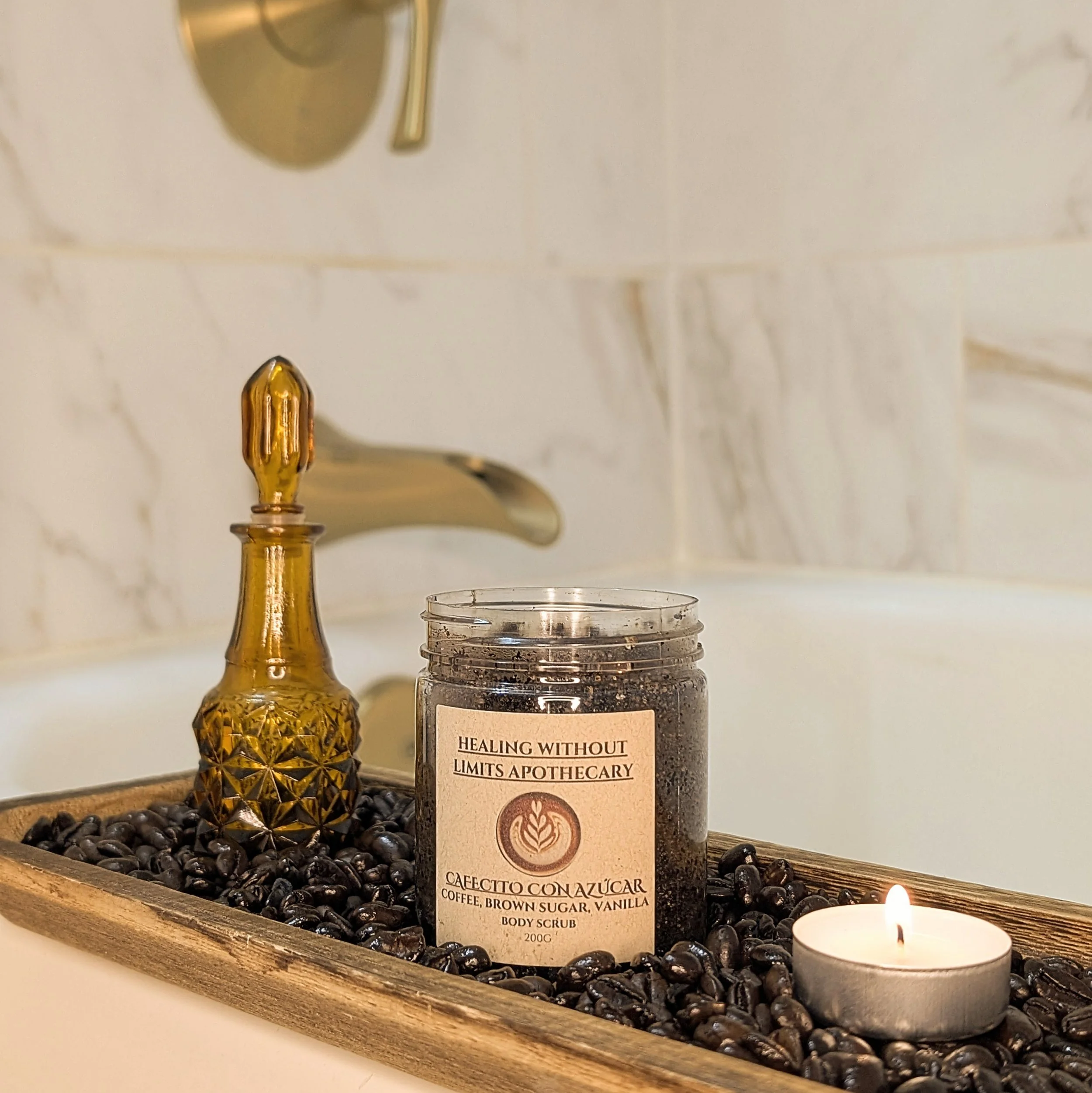 Cafecito Con Azúcar is a blend of fresh Guatemalan coffee grounds, organic jojoba oil, vanilla, and organic brown sugar. This rich combination is ideal for combating winter dryness, gently exfoliating away dull, flaky skin while sealing in moisture.