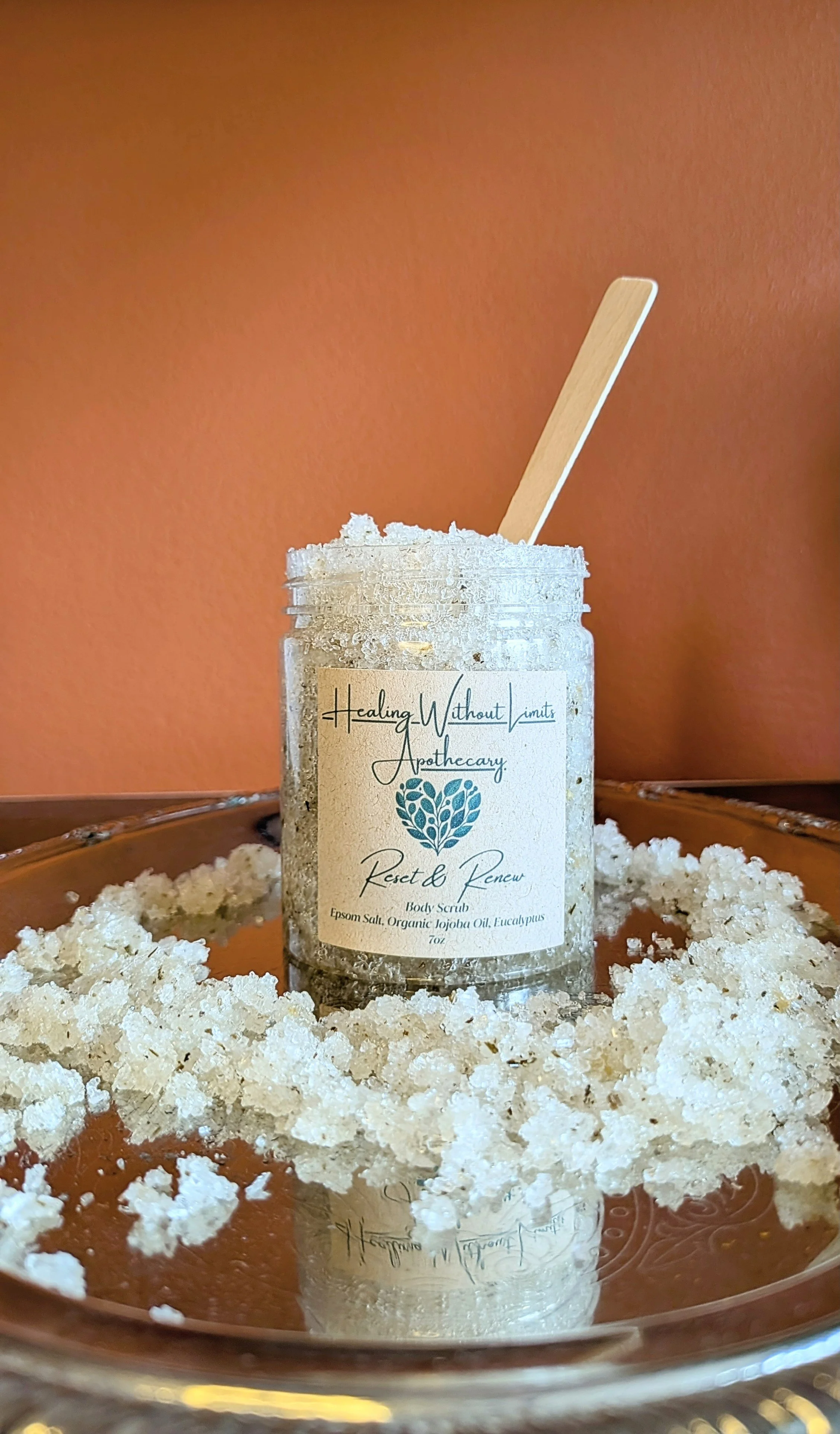 As you massage it in, the oils melts into your pores, leaving your skin soft and hydrated without a greasy finish. Renew & Reset Body Scrub is more than a scrub, it’s a deep breath and reset for your mind, body, and Spirit.